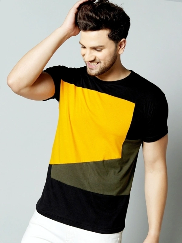 Fabric: Cotton Blend Regular Fit Round Neck T-shirt Pattern: Color Block Short Sleeve 7 Day Return Policy