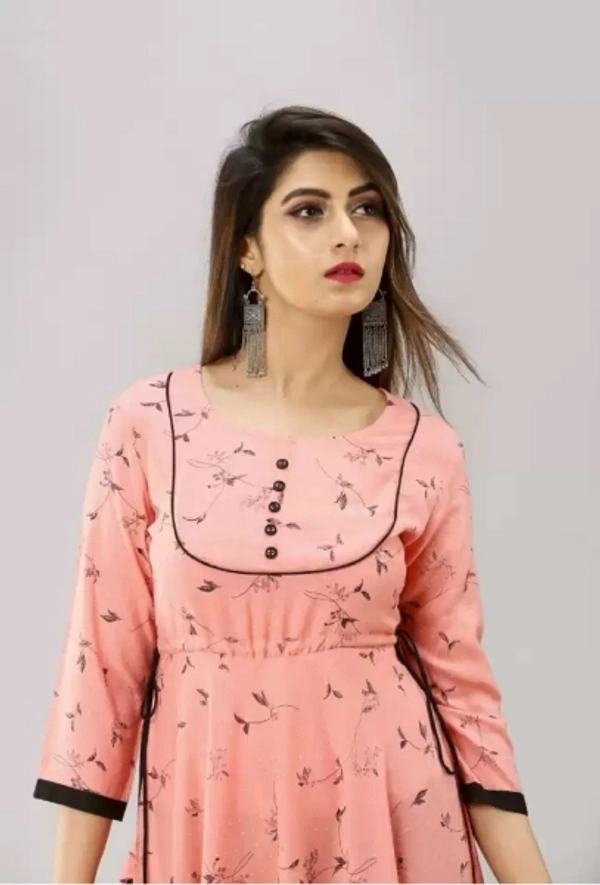 Fabric: Cambric Occasion: Casual Pattern: Printed Color: Pink Sleeve Length: 3/4 Sleeve Style: Flared 7 Days Return Policy