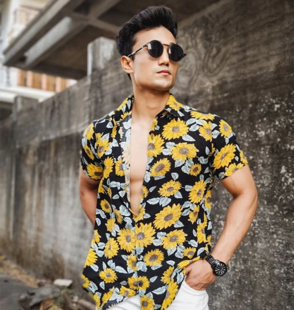 Men Floral Print Poly Crepe