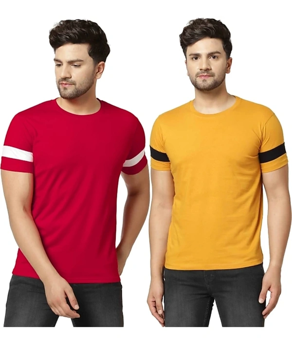 Fabric: Cotton Blend Regular Fit Round Neck T-shirt Pattern: Color Block Short Sleeve 7 Day Return Policy