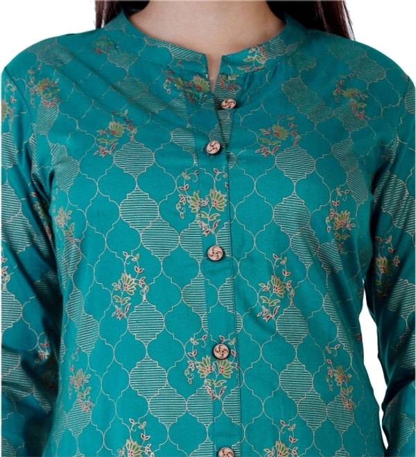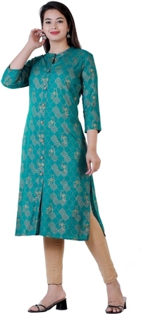 Fabric: Rayon Occasion: Casual Pattern: Printed Color: Green Sleeve Length: 3/4 Sleeve Style: Straight 14 Daays Return Policy