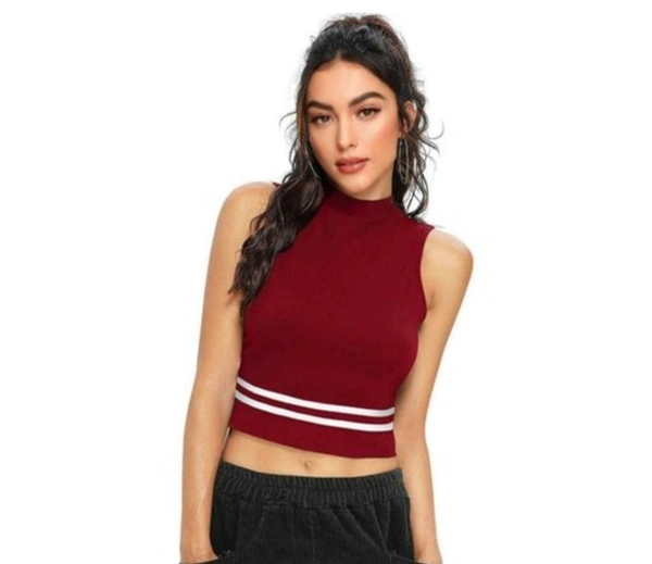 Womens Cotton High Neck Top ( Red )